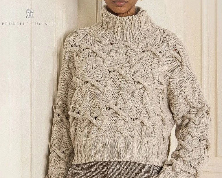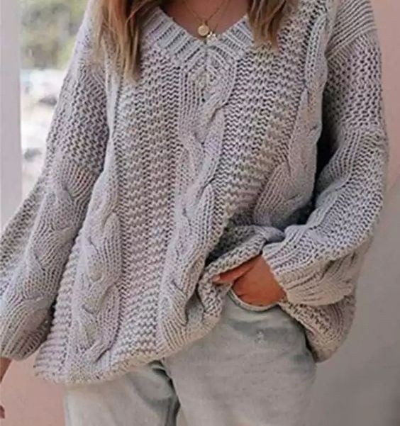 Не просто серый свитер, а исследование фактур. Его магия — в ритме разноплановых кос, которые делают простой цвет объемным.