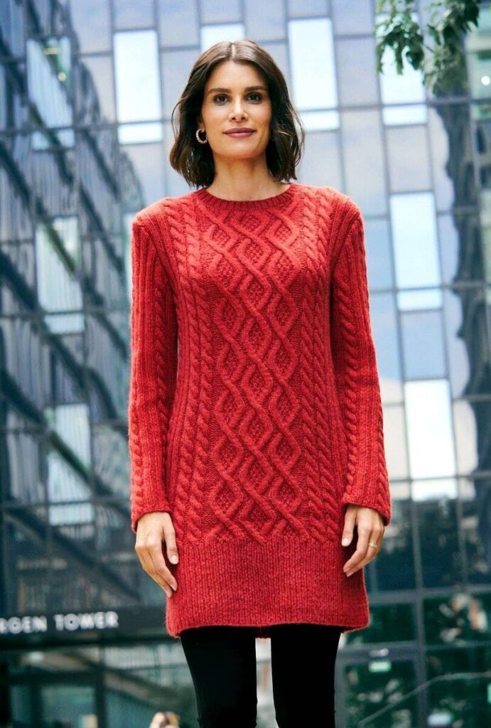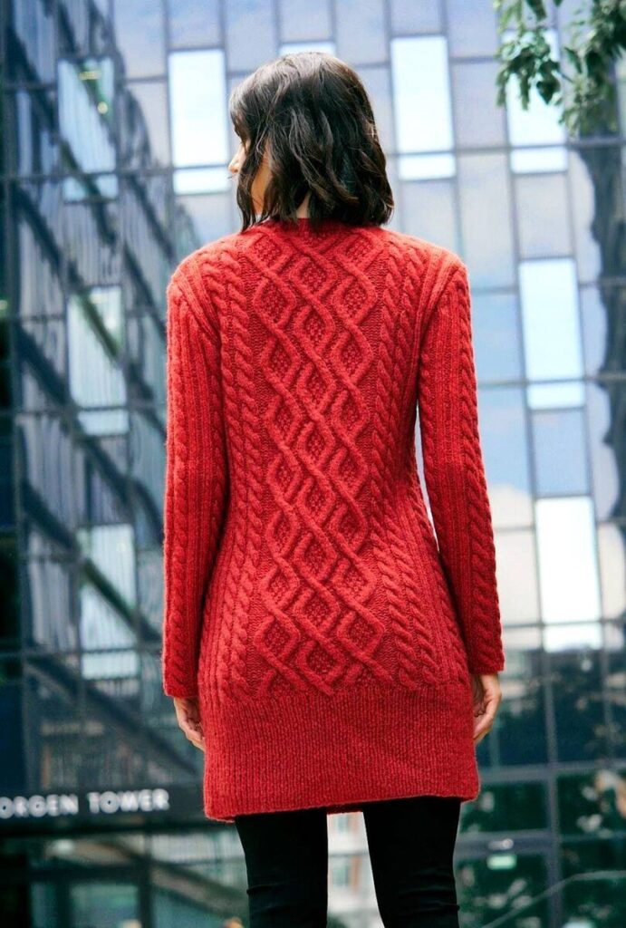 Для вязания нам потребуется 550 (600) 650 г красной (цвет № 9) пряжи LANA GROSSA «Brigitte Nr. 2»: 47% шерсть альпака, 45% хлопок, 8% овечья шерсть; 140 м/50 г.