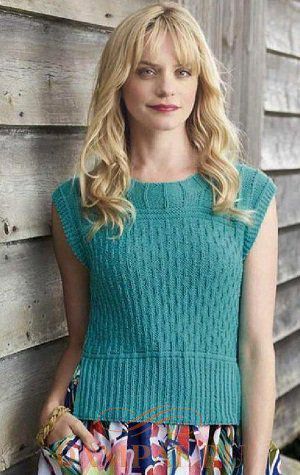 Бирюзовый летний топ выполнен комбинацией трех различных резинок.
