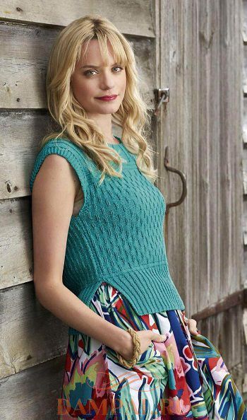 Связать установленным рисунком прямо ещё 6 рядов, закончить лицевым рядом.