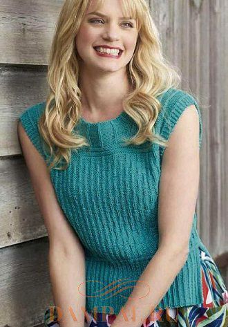 Спицами № 3.25 и по лицевой стороне набрать и провязать лицевыми 24 (24, 27, 27, 33, 37) петли вдоль края левой стороны выреза горловины, поместить маркер; провязать верхней резинкой центральную 21 (23, 25, 25, 29, 31) петлю выреза горловины переда, поместить маркер; набрать и провязать лицевыми 24 (24, 27, 27, 33, 37) петли вдоль края правой стороны выреза горловины, поместить маркер, провязать верхней резинкой 39 (43, 47, 47, 55, 59) петель спинки с держателя петель – на спицах 108 (114, 126, 126, 150, 164) петель.