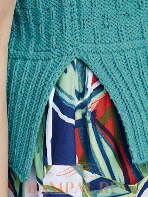 Продолжая вязать ломанной резинкой, начать вязать края проймы платочным рисунком: