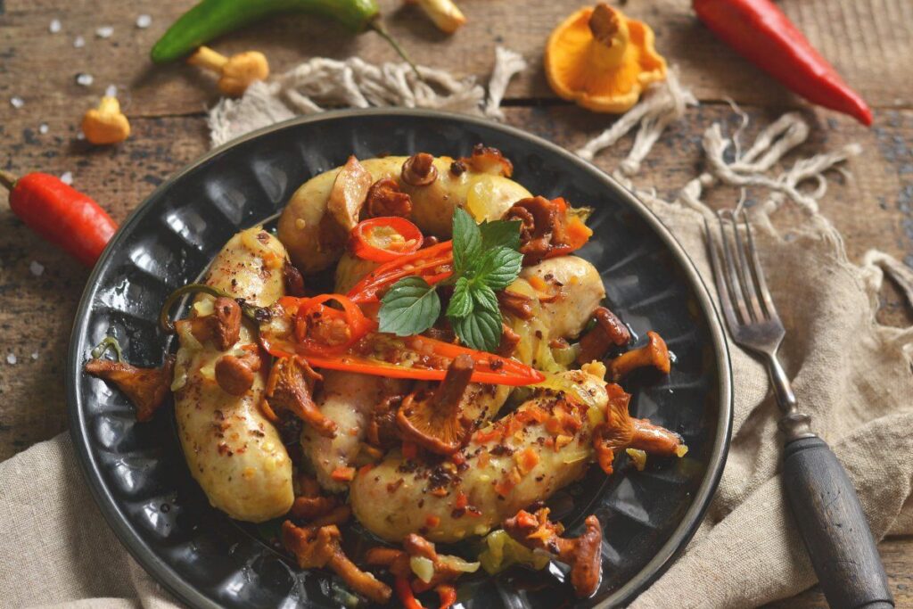 - Из куриной массы скатайте 7 одинаковых шариков. Ладони периодически смачивайте водой, чтобы мясо к ним не прилипало.
