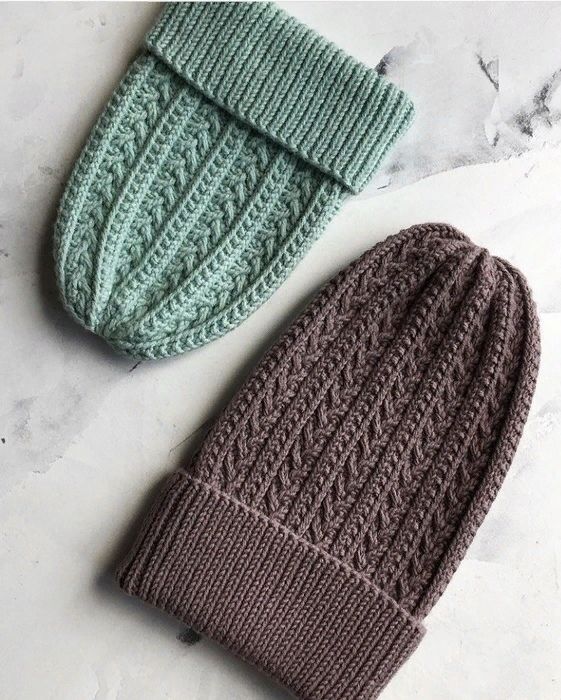 Вязать по узору на высоту 21/23-24/26 см (считать от низа шапки, т.е. с отворотом в сложенном виде) и приступить к убавлениям.