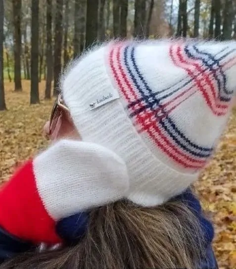 Шапка связана из пуха норки в 2 нитки + 2 дополнительные спицами №4. Расход 1,5 мотка.