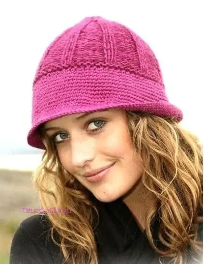 Шляпка выглядит почти также, как шапка, даже нижняя планка связана резинкой 2 х 2. Только планка шапки у лица сужается, плотно облегая его, а у шляпки, наоборот, расширяется, образуя валик и небольшие поля.