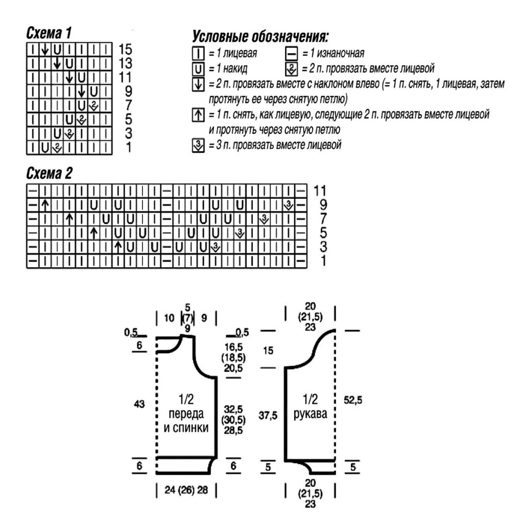 На ней даны только лицевые ряды; в изнаночных рядах все петли и накиды провязывать изнаночными.